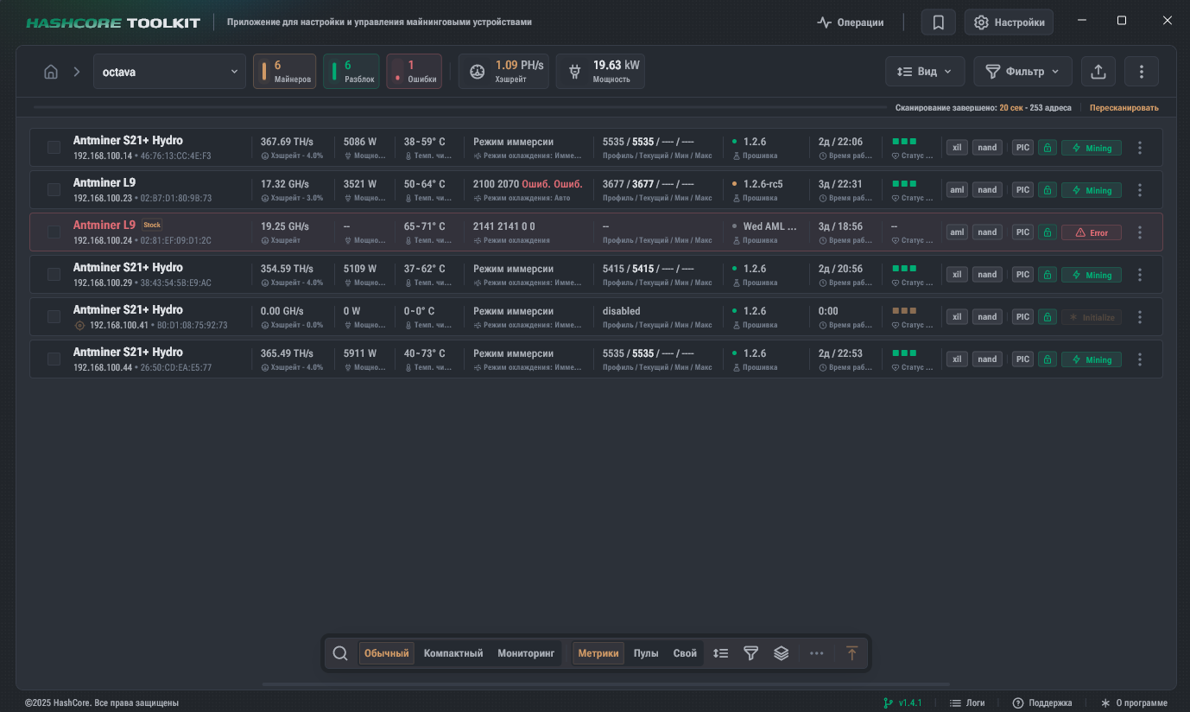 Программа предлагает удобный и простой способ управления майнинговыми устройствами, обеспечивая полный контроль над производительностью оборудования. С HASHCORE TOOLKIT вы сможете легко отслеживать состояние своих устройств, оптимизировать их производительность и поддерживать стабильность системы.